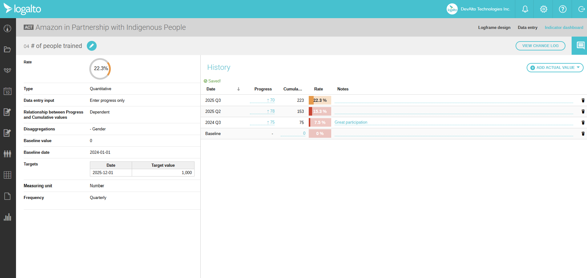This means that there is now a centralized place for every indicator that you are tracking where you can see the key information for the indicator alongside the history and the changes thanks to the change log.